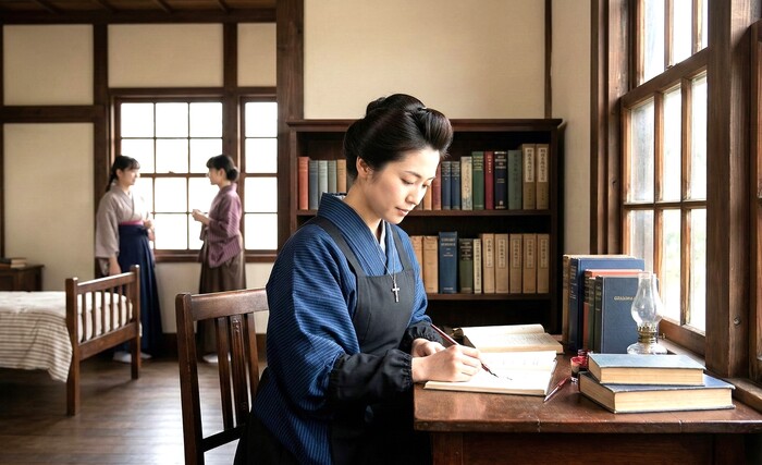 「トレインドナース」、専門的な看護教育を受ける女子学生たちの傍らには、彼女たちを厳しく、そして温かく導く教育者の存在がありました。本記事では、看護の知識を持たずして看護教育の現場に身を置いたトレインドナースの英語教師・松井エイ(女優・玄理:ひょんり)と、彼女が信じたキリスト教精神、そして舞台となる梅岡女学校の役割について取り上げます。