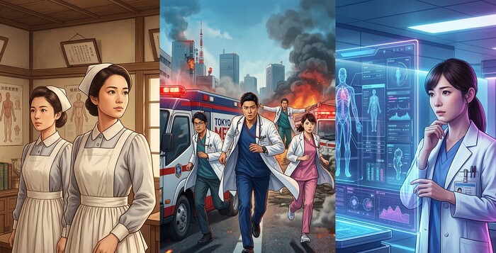 2026年は、明治の看護黎明期から最新の救命医療、そして美容医療の裏側まで、看護・医療の多角的な姿が描かれます。